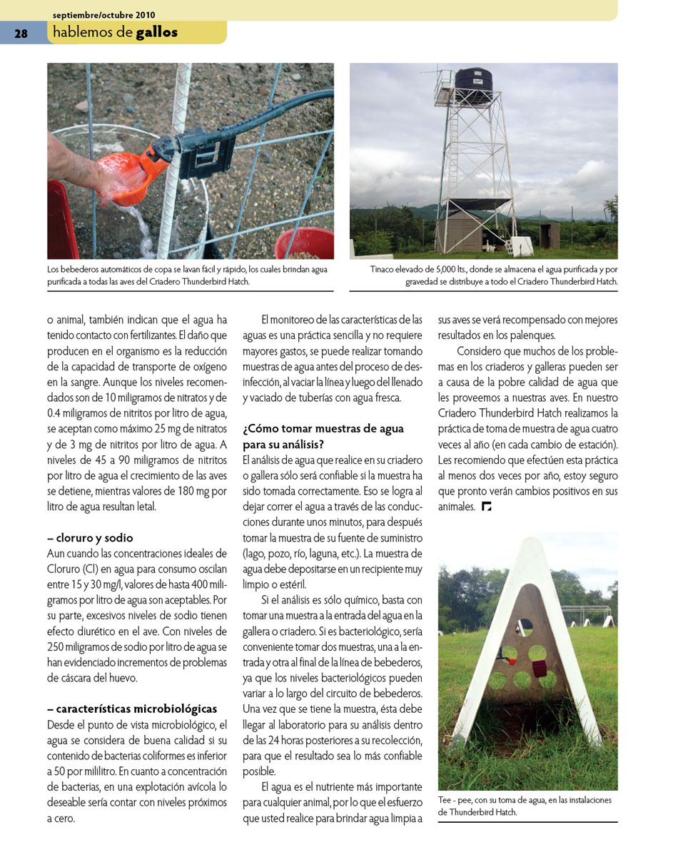 Importancia del agua en las aves de combate